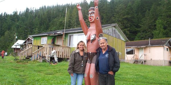 My late Father was French, my late Mother Indigenous. Unfortunately I did not grow up inheriting the unique cultures of the Kwakwaka'wakw (also known as Kwakuitl peoples of the Pacific Northwest Coast). Nothing stopping me now! Back in 2003 my husband and I were heading out on a fishing trip to Vancouver Island (no where in particular) My father had recently passed away and my mom had asked if she could come with us! Not on the fishing trip but to take her to her "Indian Reserve" on Guilford Island and Kingcome Inlet. Plans changed and off we went., Rolled into Alert Bay and had the most awesome experience to be able to attend our first "Potlatch" which was a three day event. The word "Potlatch" means "to give". The "Potlatch" ceremony markes important occasions in the lives of the Kwakwaka'akw: the naming of children, marriage, transferring rights and privileges and mourning the dead. We then headed to my mom's Indian Reserve on Guilford. Island. What an experience! Never seen my mom so happy! Had dinner in the Long House, dug for trading beads under the old Long House, socialized with amazing family members, fires on the beach, mom reminiscing with her favourite aunty and spending a great amount of time with my Great Great Uncle Sam (pic to the left) in his carving hut! Amazing times!! It was after this experience that my interest in Indigenous art began. I started researching the "Mid Coast" art style and then created my own unique style. Still learning, still progressing....but hey I'm having such a wonderful time creating my art!